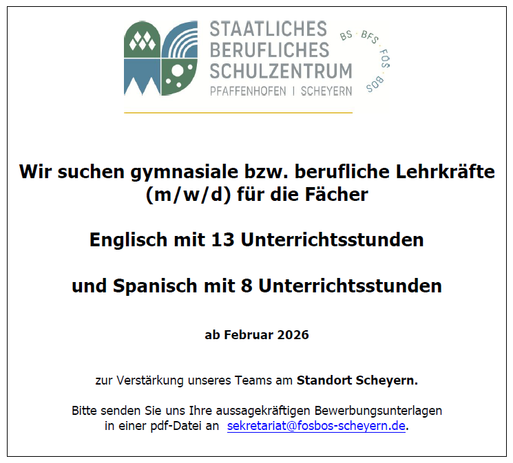 Auch in diesem Schuljahr kam Nils Reinsperger von der Agentur für Arbeit als Berufsberater wieder an unsere Schule, um die Schülerinnen und Schüler der BOS weiterlesenBerufsberatung durch das Arbeitsamt→